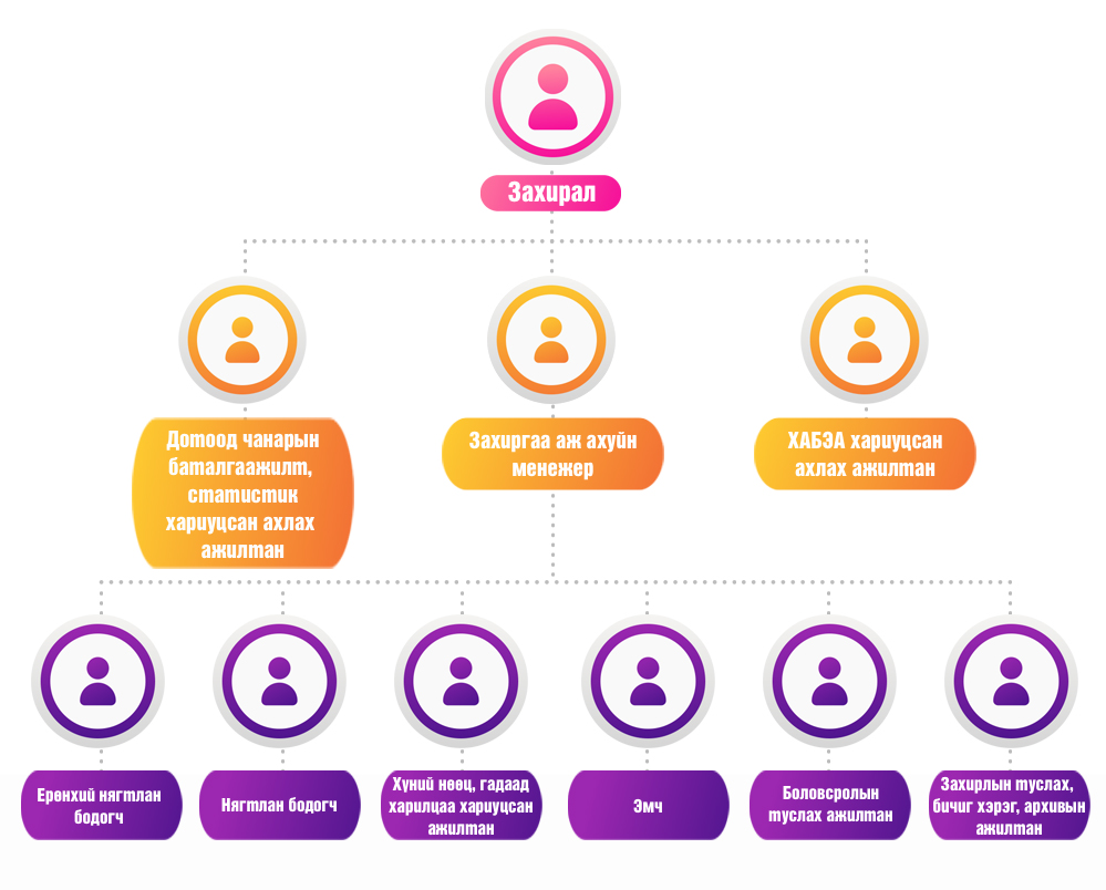 Хэнтий аймаг дахь Политехник коллежийн Захиргаа аж ахуйн алба нь 9 захиргааны ажилтантай бөгөөд 1-ээс дээш жил ажилласан туршлагатай боловсон хүчинтэй.
