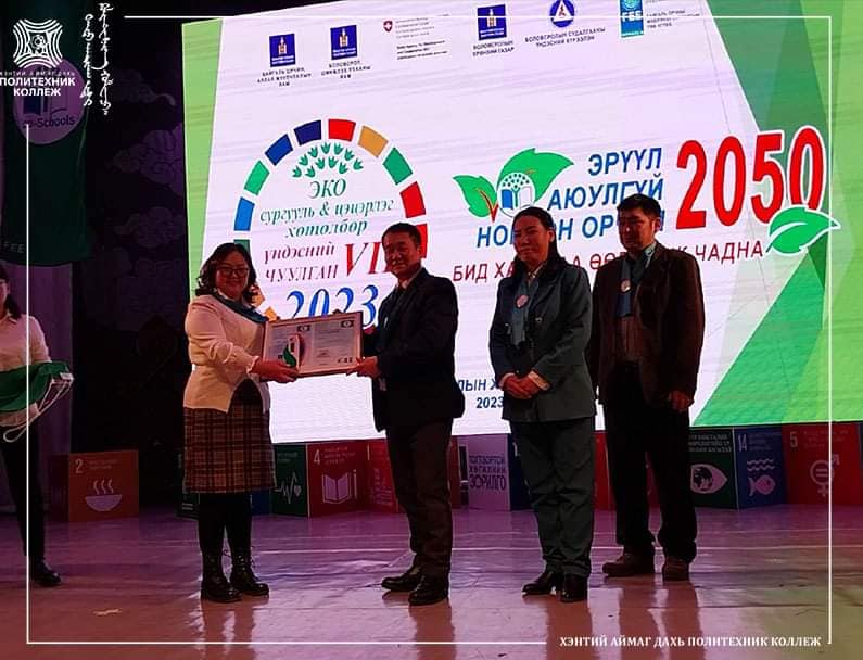 Өнөөдөр буюу 2023.02.02-ны өдөр "ОУ-ын Эко сургууль, цэцэрлэг хөтөлбөр"-ийн VII чуулганд оролцож өмнөх жилийн амжилтаа бататган 2 дахь удаагаа "НОГООН ТУГ, АЛТАН ГЭРЭГЭ" өргөмжлөлөө хамт олноо төлөөлөн БИДЭН 3 гардаж авлаа.