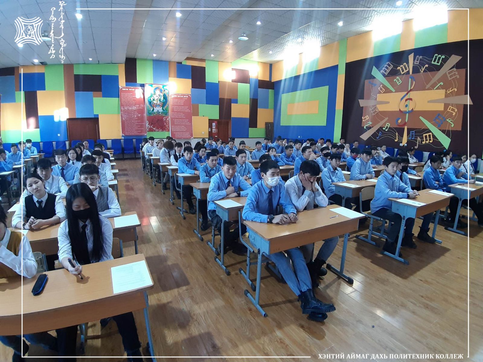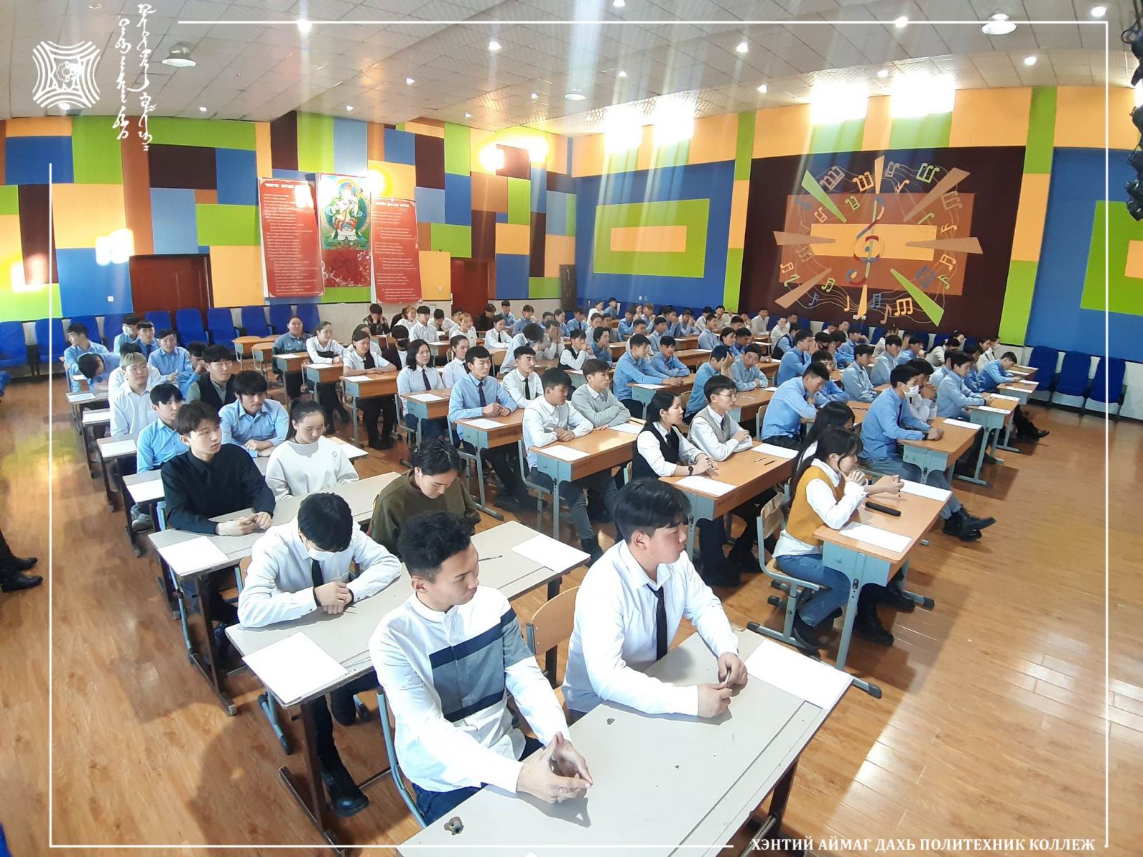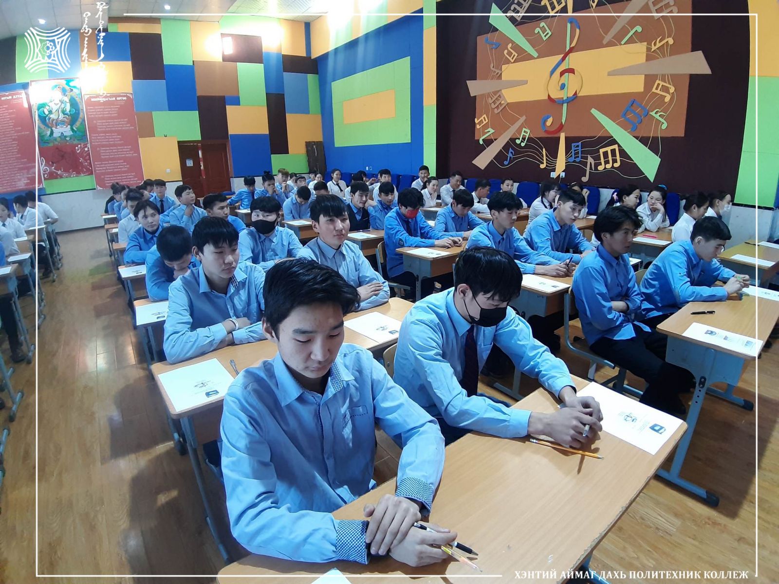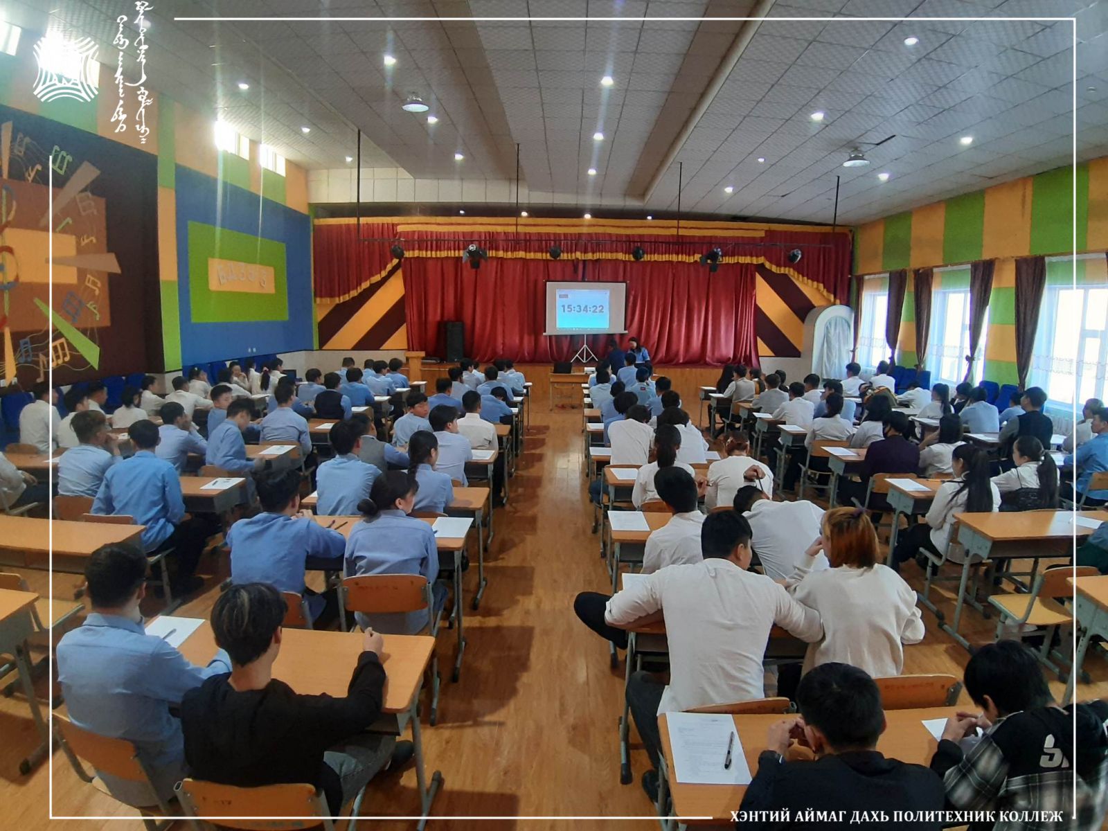 Хэнтий аймаг дахь Магадлан итгэмжлэгдсэн Политехник коллежийн 2022-2023 оны хичээлийн жилийн өвлийн төгсөлтийн суралцагчдын 2,5 жилийн туршид сурсан, мэдсэнээ үнэлж, дүгнүүлэх төгсөлтийн шалгалтын үйл ажиллагаа 2023 оны 01 дүгээр сарын 02-05-ны өдрүүдэд зохион байгуулагдаж байна. Нийт төгсөгчдөдөө амжилт хүсье.