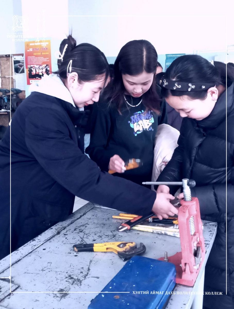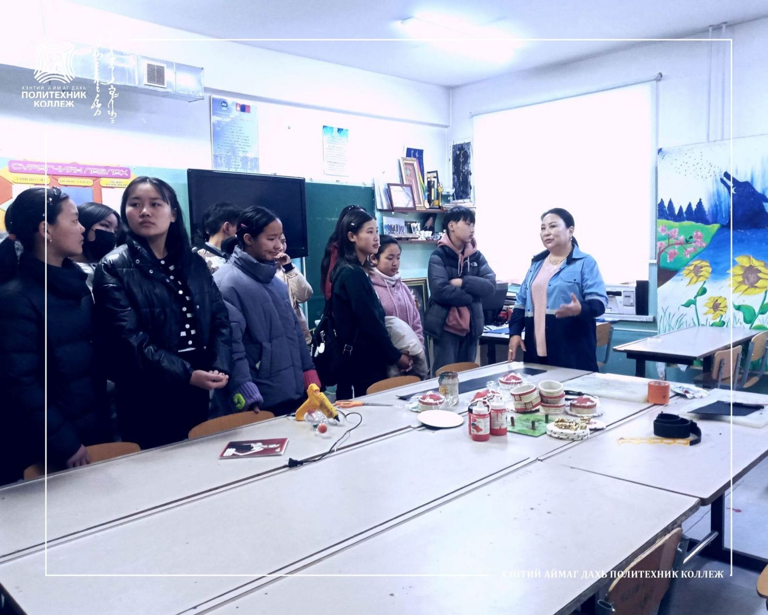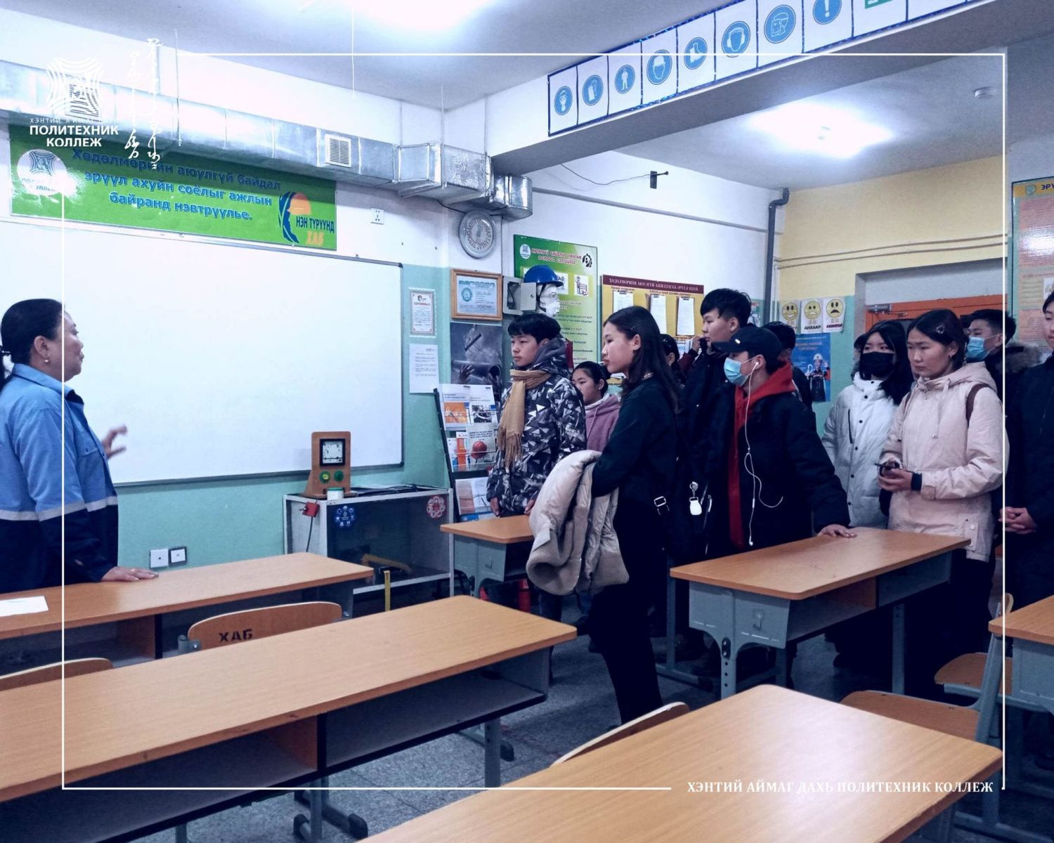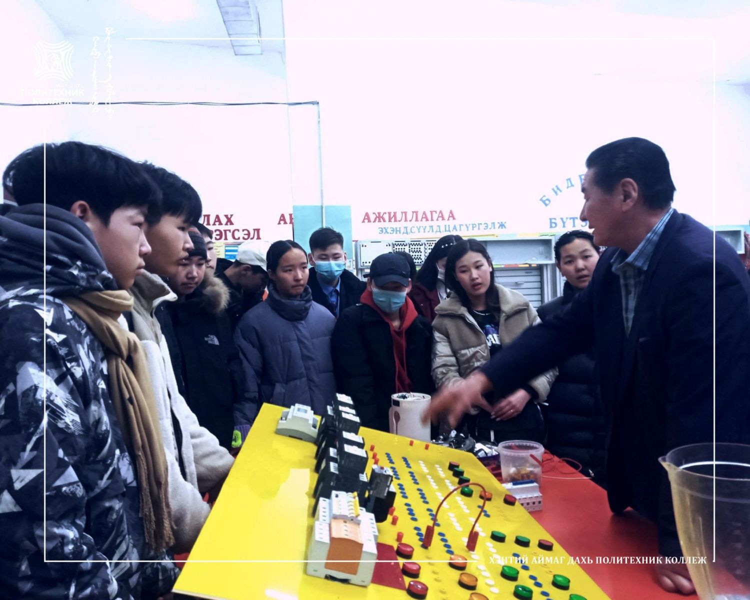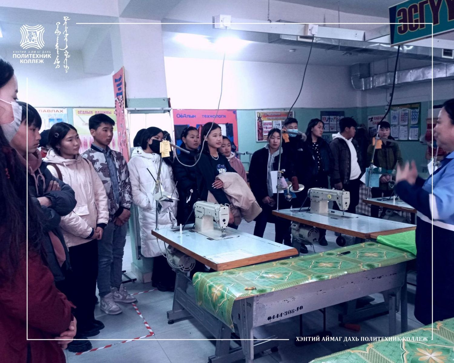 Хэнтий аймаг дахь магадлан итгэмжлэгдсэн Политехник коллежид 2023 оны 03 дугаар сарын 01–ний өдөр Тэмүүжин цогцолбор сургуулийн Н.Мөнх-Од багштай 9в ангийн 30 сурагч ажил мэргэжлийн чиг баримжаа авах зорилгоор мэргэжлийн ангиудын дадлагын газар мөн сургалтын орчин болон сургуулийн сургалтын үйл ажиллагаатай танилцаж өөрсдийн сонирхсон мэргэжлийн дагуу дэлгэрэнгүй мэдээлэл авлаа.
