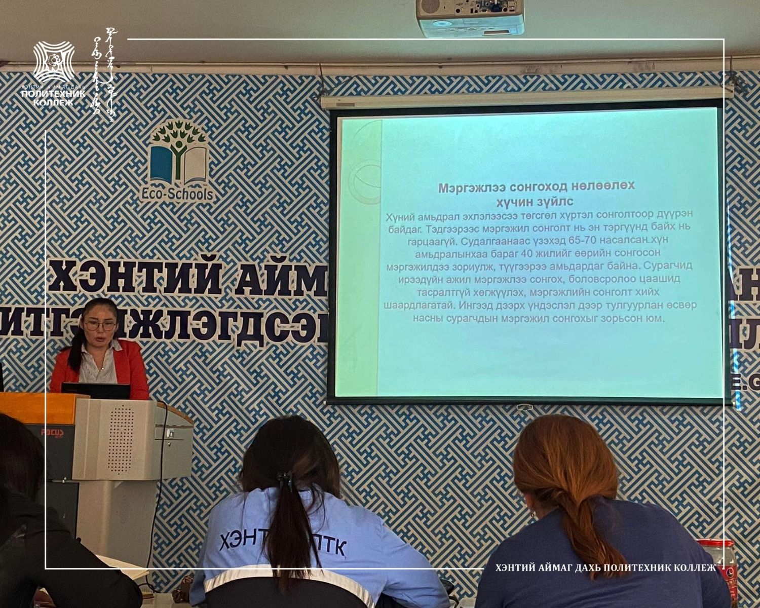 Хэнтий аймаг дахь Магадлан итгэмжлэгдсэн Политехник коллеж нь суралцагчдыг мэргэжилдээ дур сонирхолтой болоход нөлөөлөх ажлын хүрээнд элсэн орж ирсэн суралцагчдад мэргэжлээрээ бахархах, мэргэжилдээ хайртай байх, төгсөөд мэргэжлээрээ ажиллах хүсэл эрмэлзлэлийг бий болгоход нөлөөлж байгаа хүчин зүйлсүүдийг илрүүлж түүнийг шийдвэрлэх арга замыг эрэлхийлэн багш нарын бүтээлч, судлаач, шинийг санаачлах байдлыг хөгжүүлэх зорилгоор “БАГШ НАРЫН ИЛТГЭЛ”-ийн уралдаан амжилттай явагдлаа.Мэргэжил арга зүйн зөвлөлийн багш нараас бусад бүх багш нар бие даан оролцсон юм.Уралдааны дүнгээр: