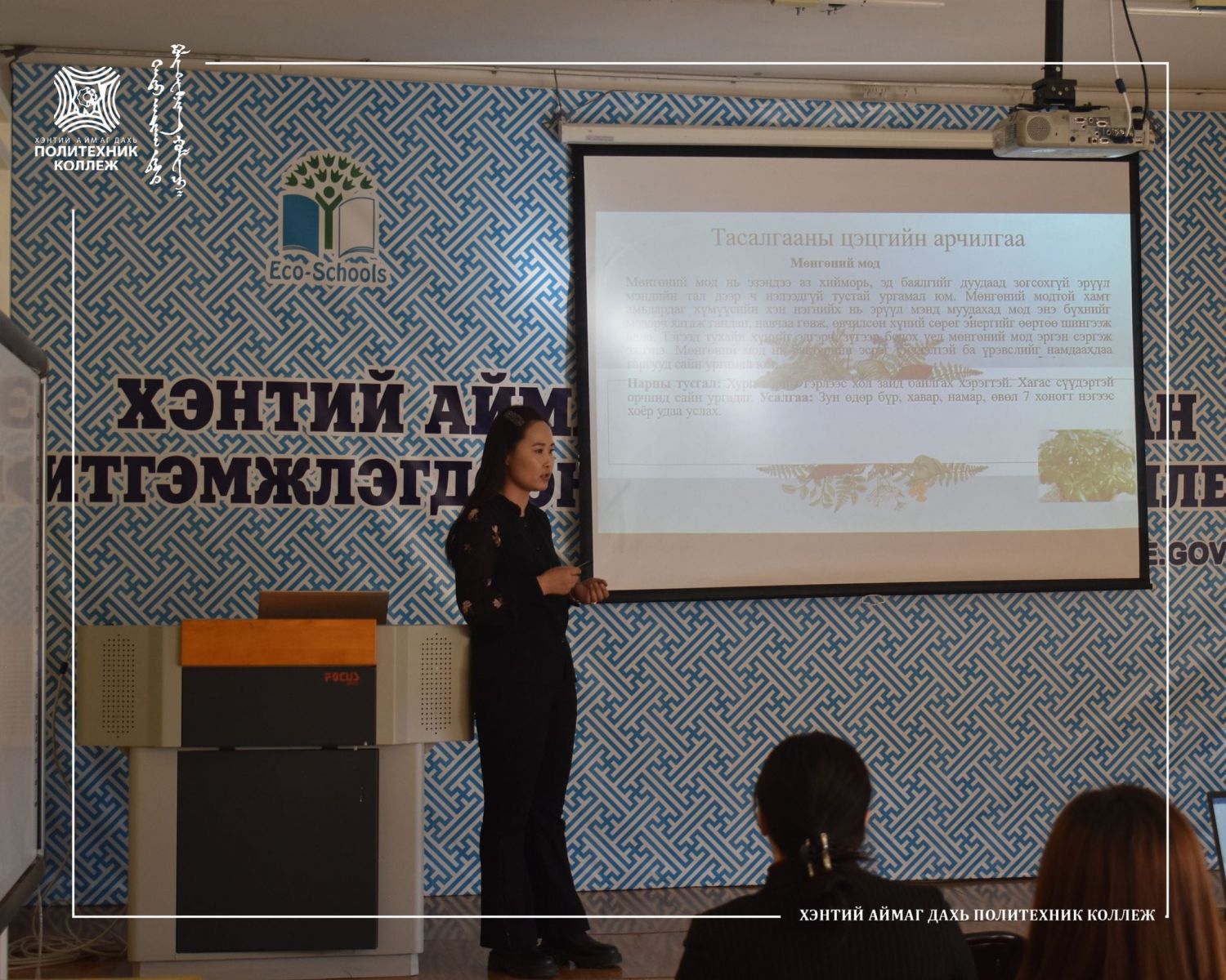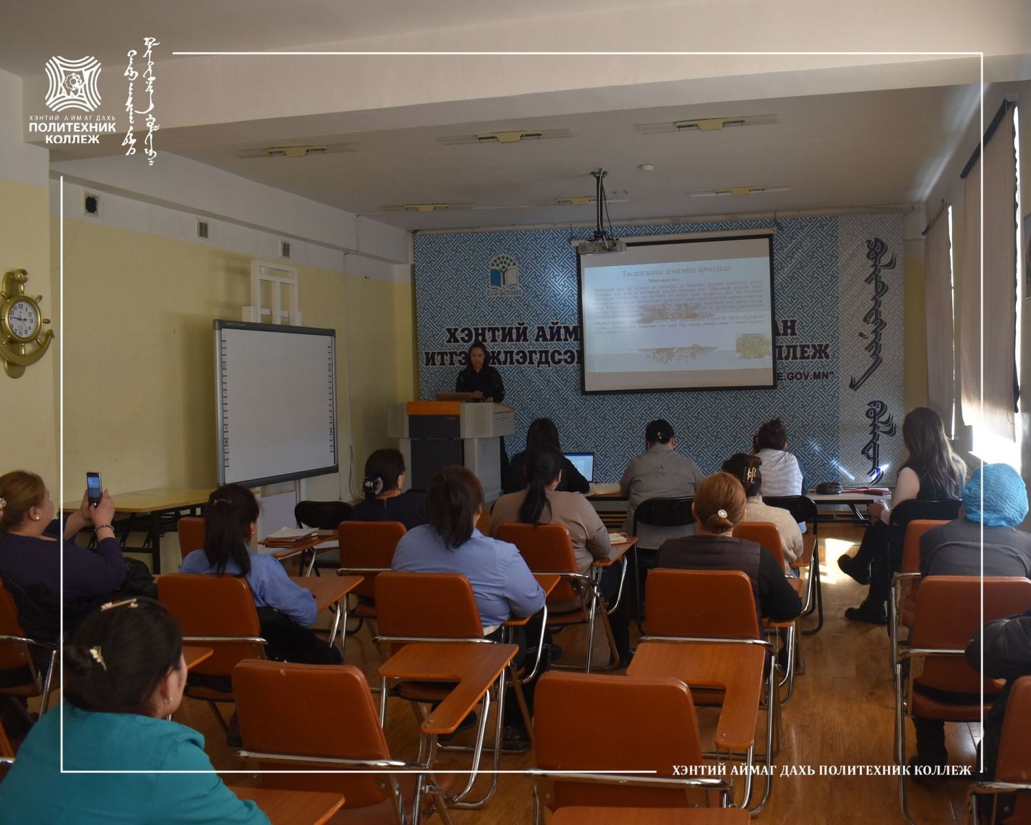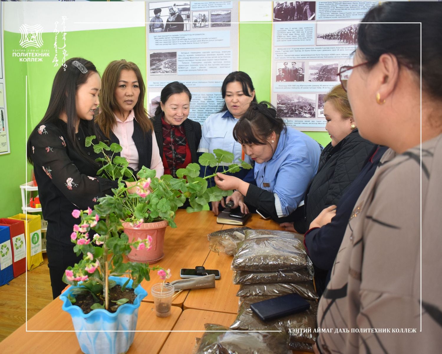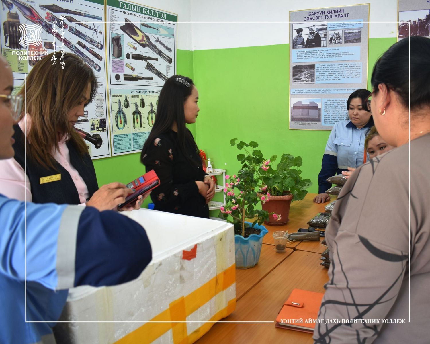 Хэнтий аймаг дахь Магадлан итгэмжлэгдсэн Политехник коллежийн Техник-технологийн тэнхимийн мэргэжил сурталчлах аяны хүрээнд нийт багш, ажиллагсдад зориулсан “Тасалгааны цэцгийн хөрс бэлтгэх, арчилгаа хийх, онол, дадлага хосолсон сургалт”-ыг Хүлэмжийн аж ахуйн фермерийн Г.Рэгзэдмаа багш амжилттай зохион байгуулж өөрийн хариуцсан өрөө тасалгаа, анги танхимаа цэцэгжүүлж, арчилж тордоцгооё гэсэн сайхан уриалгыг дэвшүүллээ. .