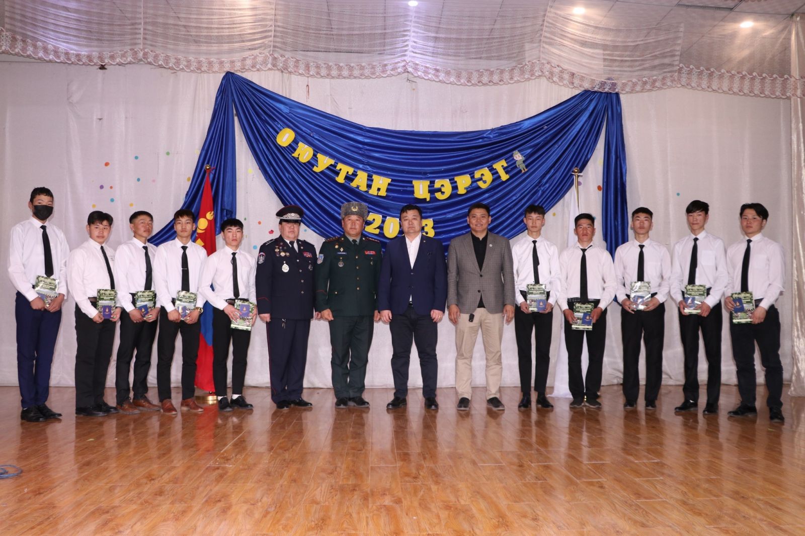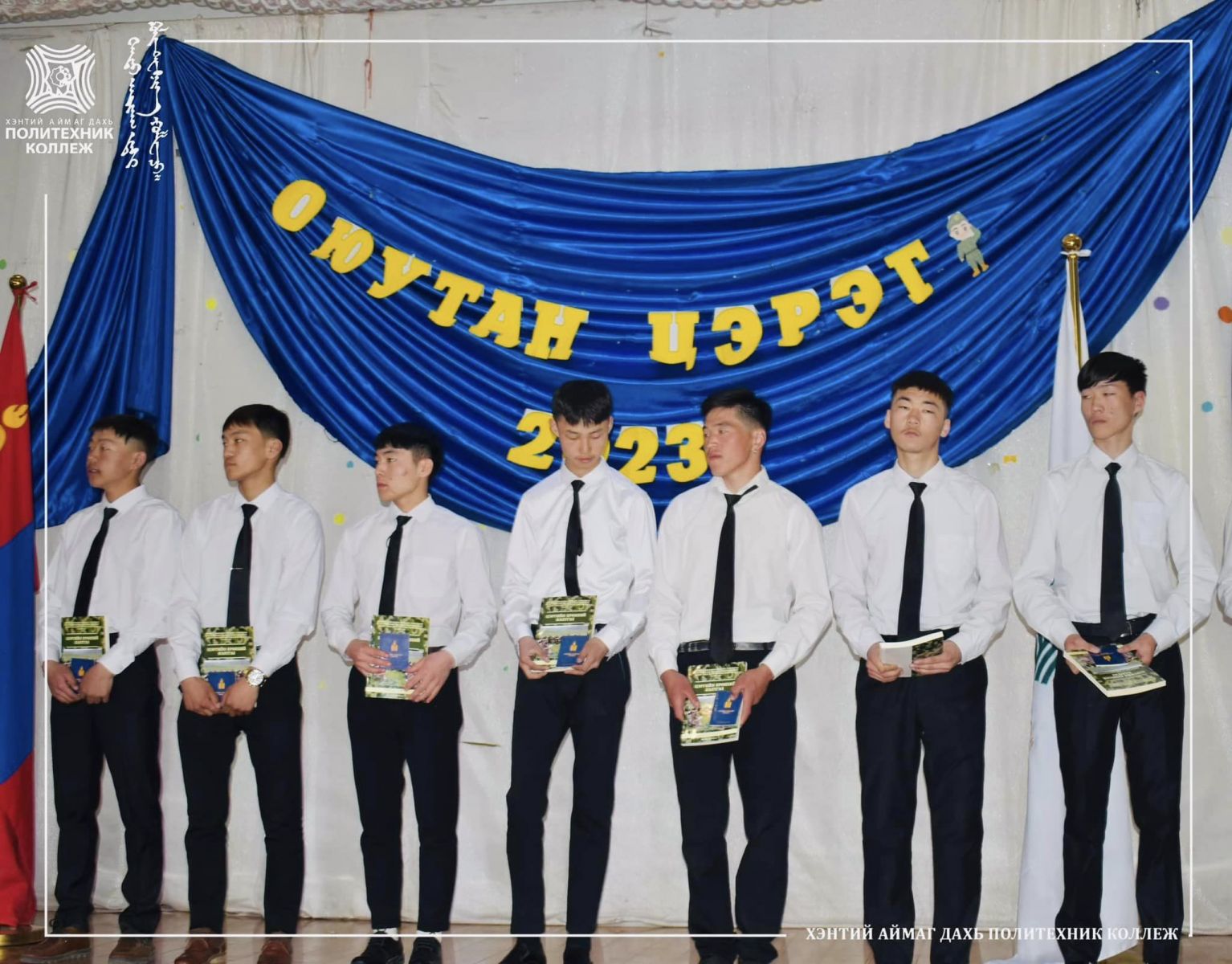 Монгол Улсын их, дээд сургуулийн оюутнуудыг суралцах хугацаанд нь цэргийн эрчимжсэн сургалттай тусгай хөтөлбөрөөр цэргийн бэлтгэл сургалтад хамруулан цэргийн алба хаалгах бололцоог бүрдүүлэх, эх орноо батлан хамгаалах, төрийн алба хаших, эрүүл чийрэг, бие бялдар, сэтгэл зүйн болон цэргийн бэлтгэлтэй залуусын тоог нэмэгдүүлж, улс орныг батлан хамгаалах чадавхийг сайжруулан дайчилгааны бэлтгэл үүрэгтний нөөцийг хангах зорилгоор Монгол улсынн хэмжээнд “ОЮУТАН ЦЭРЭГ” хөтөлбөр хэрэгждэг билээ. Энэхүү хөтөлбөрт Хэнтий аймаг дахь Политехник коллежийн сурагчид хамрагдаж эх орноо батлан хамгаалах нэр төртэй бөгөөд хариуцлагатай үүргийг хүлээж байгаа юм. Тэгвэл өнөөдөр эдгээр сурагчдад цэргийн үүрэгтний үнэмлэх гардуулах үйл ажиллагаа Политехник коллеж дээр амжилттай зохион байгуулагдлаа.