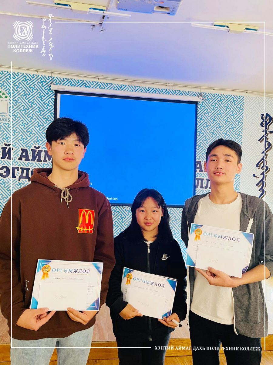 3-р байр -Цахилгаанчин мэргэжлийн ангийн суралцагч Г.Төгөлдөр нар шалгарлаа.