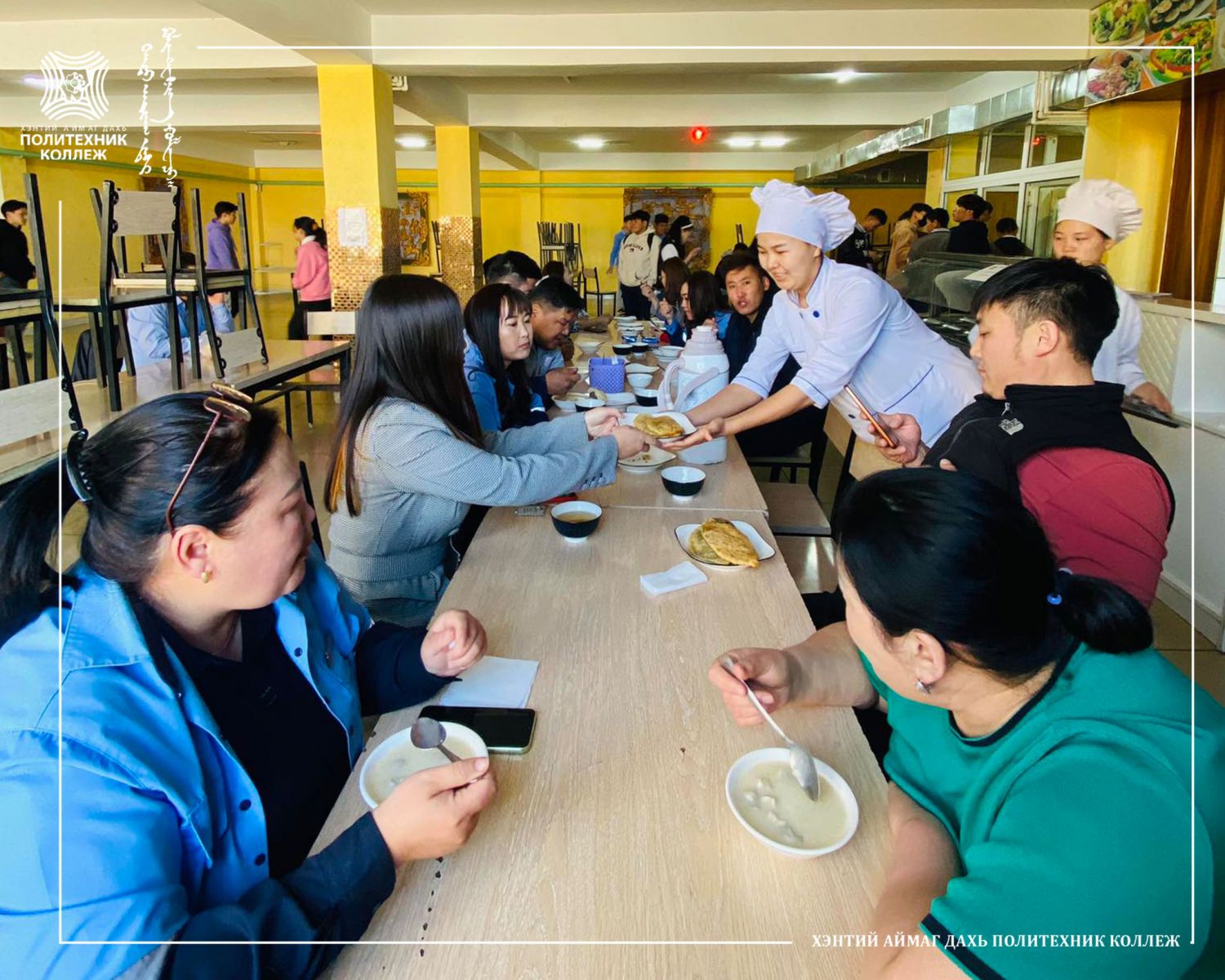 Багш ажилчдын санхүүгийн асуудлыг хөнгөвчилж тогоочийн ангийн багш суралцагчид өөрсдийн хийсэн хоолны зөвхөн материалынх зардлыг тооцож үйлчилдэг. Та 1,2-р хоолыг ердөө 2000 мянган төгрөгөөр идчихнэ гэсэн үг. Гоё сонсогдож байгаа биз.